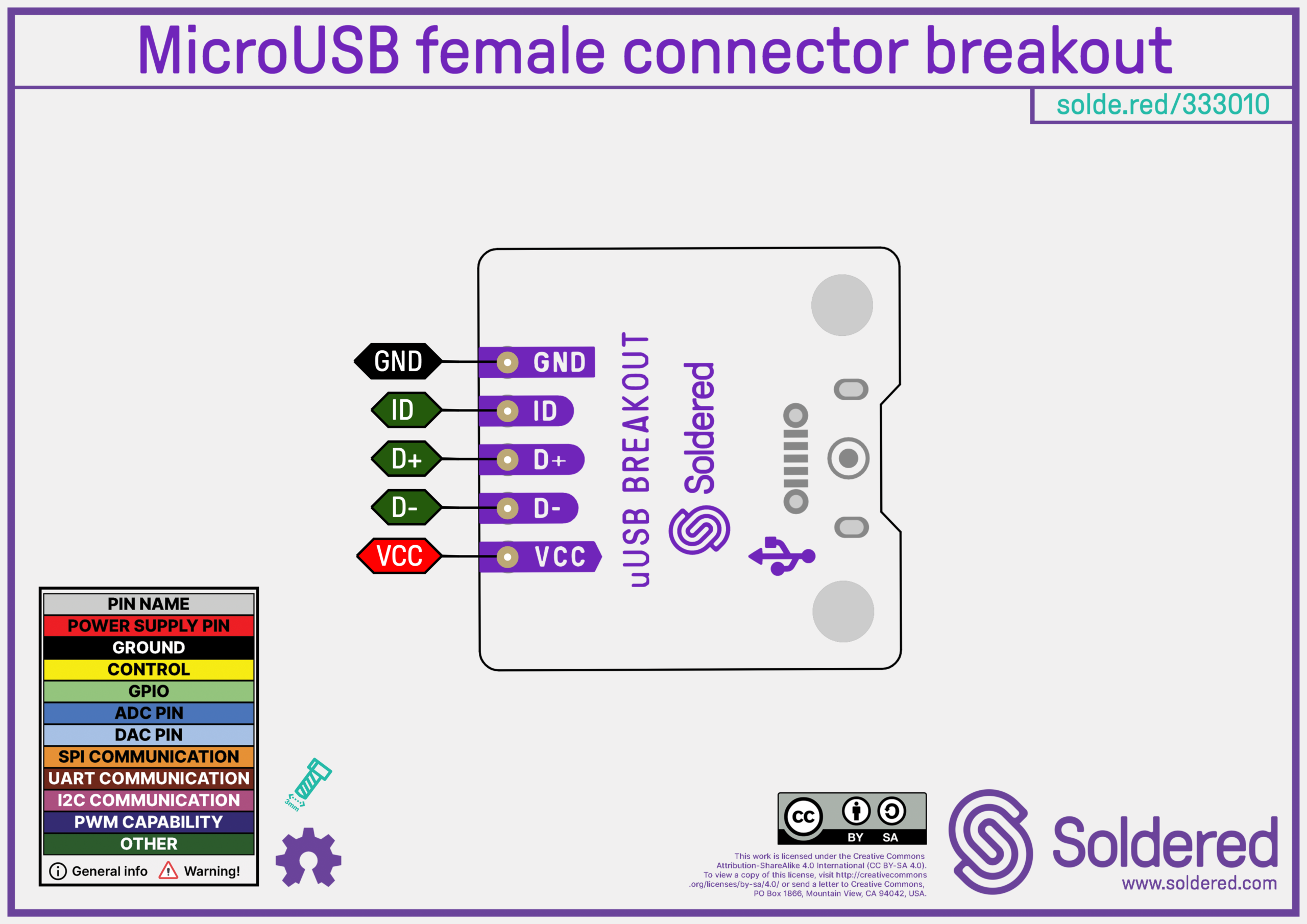Das Breakout-Board bietet einfachen Zugriff auf alle fünf MicroUSB-Pins (VCC, GND, D+, D-, ID), die über klar beschriftete Header-Pins verfügbar sind. Ob für portable Geräte, Ladelösungen oder Datenkommunikations-Schnittstellen – sein durchdachtes Design ermöglicht schnelle Verbindungen. Durch die kompakte Bauweise ist es perfekt für Projekte mit begrenztem Platzangebot und sorgt für ein professionelles Finish, ohne dabei auf Funktionalität zu verzichten.