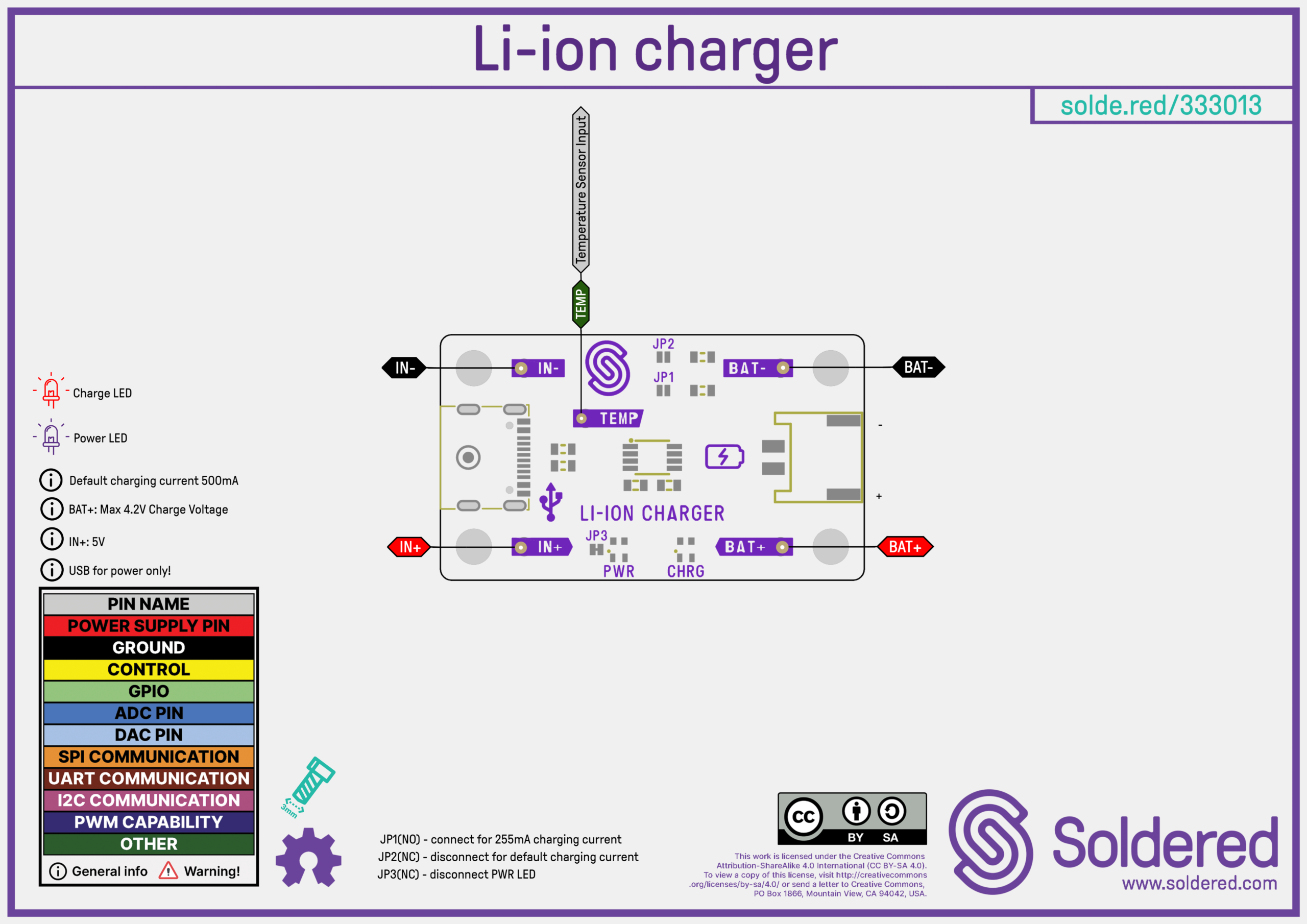Produkthinweise: Die rote LED leuchtet, während die Batterie geladen wird. Die grüne LED leuchtet, wenn die Batterie vollständig geladen ist. Vier Befestigungslöcher auf der Platine ermöglichen eine einfache Integration in Projekte. Wird mit 5 Pins geliefert, die verlötet werden müssen.