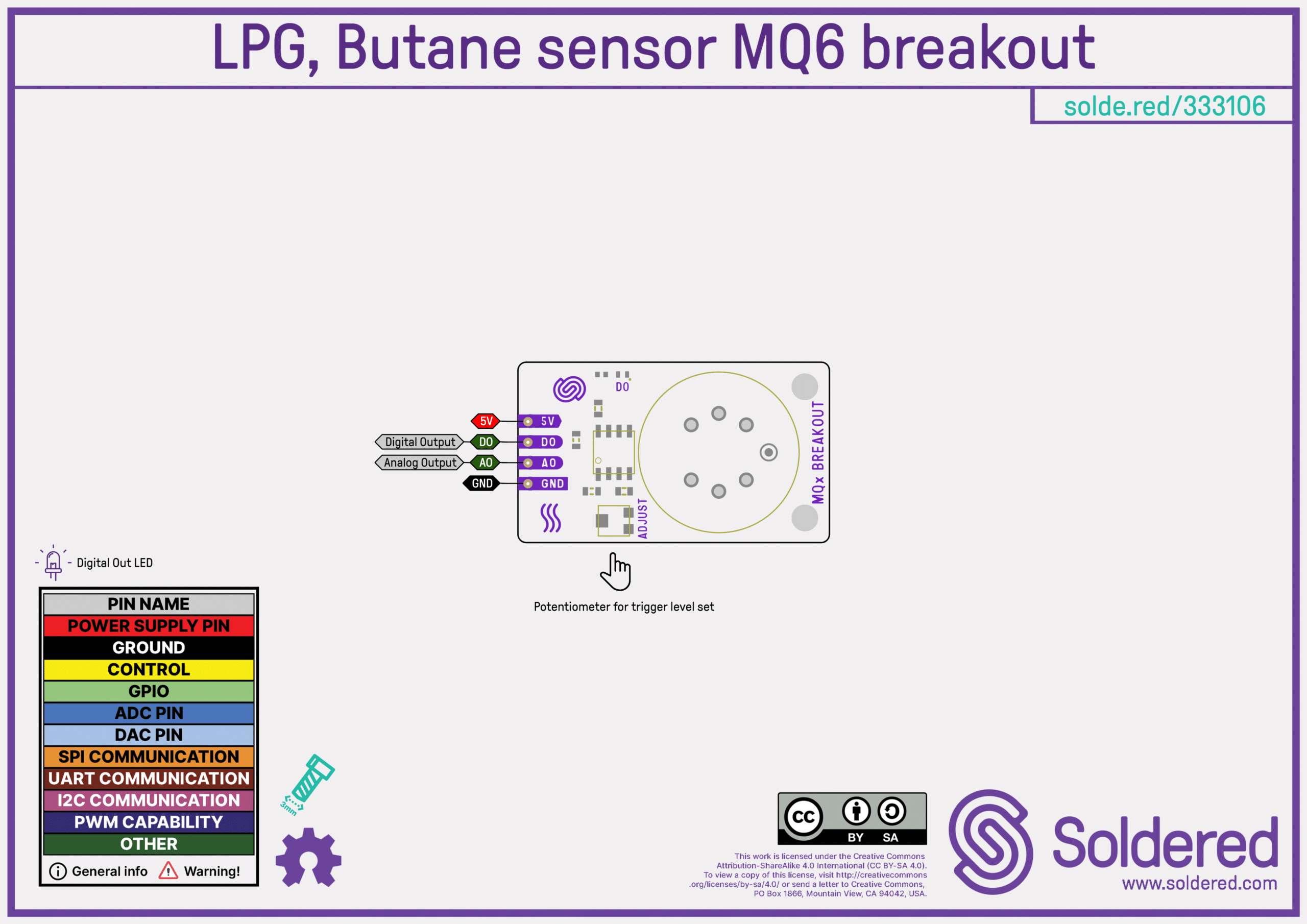 DO Pin kennzeichnet digitalen Output. AO kennzeichnet den analogen Output. Digitalen Output bekommt man mit der Installierung der Grenzwerte mit dem Potentiometer. Der analoge Output hängt von der Gaskonzentration um Sensor herum ab.