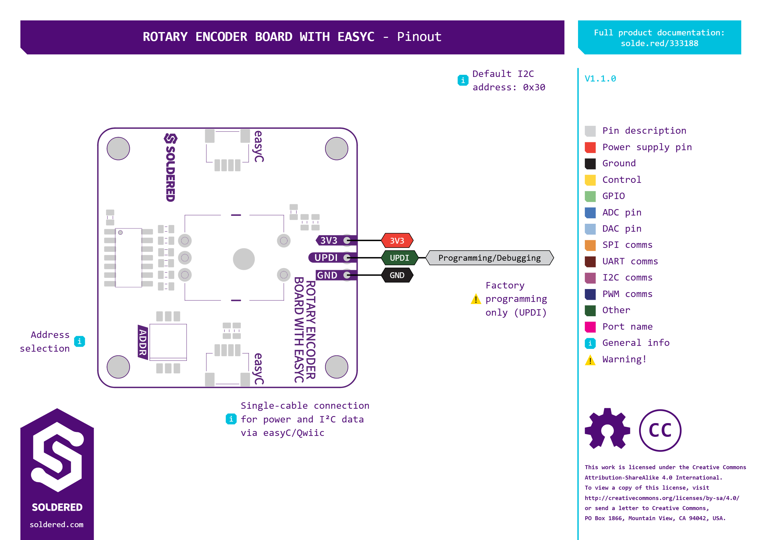 Unsere Breakout-Platine vereinfacht die Verwendung von Drehgebern durch die Nutzung der easyC-Technologie, wodurch sie leicht mit Mikrocontrollern oder anderen Schaltungen verbunden werden kann. Sie nimmt den Eingang vom Drehgeber entgegen und übersetzt ihn in Signale, die Ihr Mikrocontroller interpretieren kann. Neben dem bereits erwähnten Drehgeber-Modul verfügt die Platine auch über einen kleinen ATTiny404 Mikrocontroller sowie einen Schalter zur Auswahl der I2C-Adresse. Diese Breakout-Platine wird mit 2 easyC-Anschlüssen für eine einfache Plug-and-Play-Integration in das easyC-System geliefert. Falls Sie easyC nicht verwenden möchten, kann das Modul auch über Standard-Header genutzt werden.