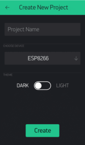 - 4. Zatim, upišite naziv projekta i odaberite uređaj koji ćete koristiti u projektu, npr. „ESP8266“. Kliknite „Create“.