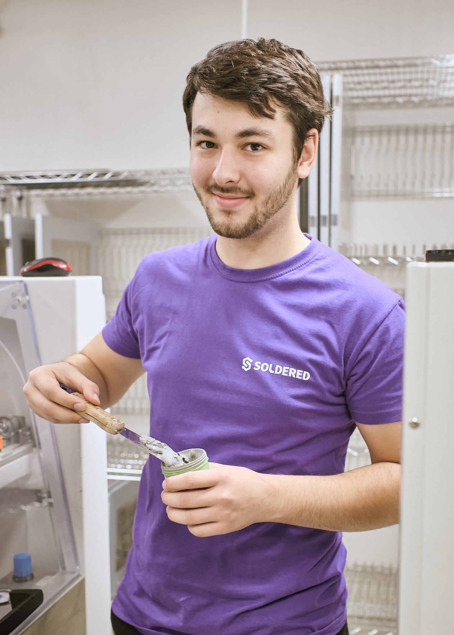 Soldered je prijateljski nastrojen, ali opet je apsulutni geek. To se najviše vidi kroz glavnu brand boju – ljubičastu. Sve naše ploče će od sada biti prepoznatljive ljubičaste boje.