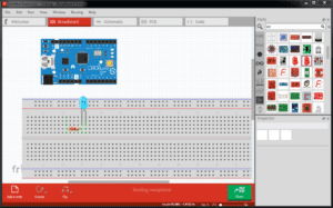 Vjerujemo da je ovo dio gdje ćete najviše vremena provoditi u Fritzingu. Omogućuje breadboard (eksperimentalna pločica) pogled, odnosno daje osječaj fizičkog slaganja komponenti.