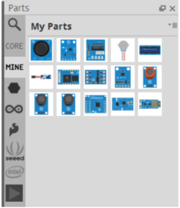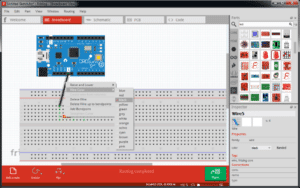 Pri ulasku u Fritzing na Breadboard view prikazati će nam se eksperimentalna pločica, koju ćemo gotovo uvijek i korisiti tako da je nećemo dirati. Part možete brisati pomoći tipkel delete ili izbornika kojeg pozivati desnom tipkom miša. Pretpostavljam da ste importali Dasduino pločicu u Fritzing prema upustvima iznad, pa ćemo je pronaći tako da u Search upišemo Dasduino ili kliknemo na tab Mine i jednostavno ju odvućemo u prozor s eksperimentalnom pločicom.