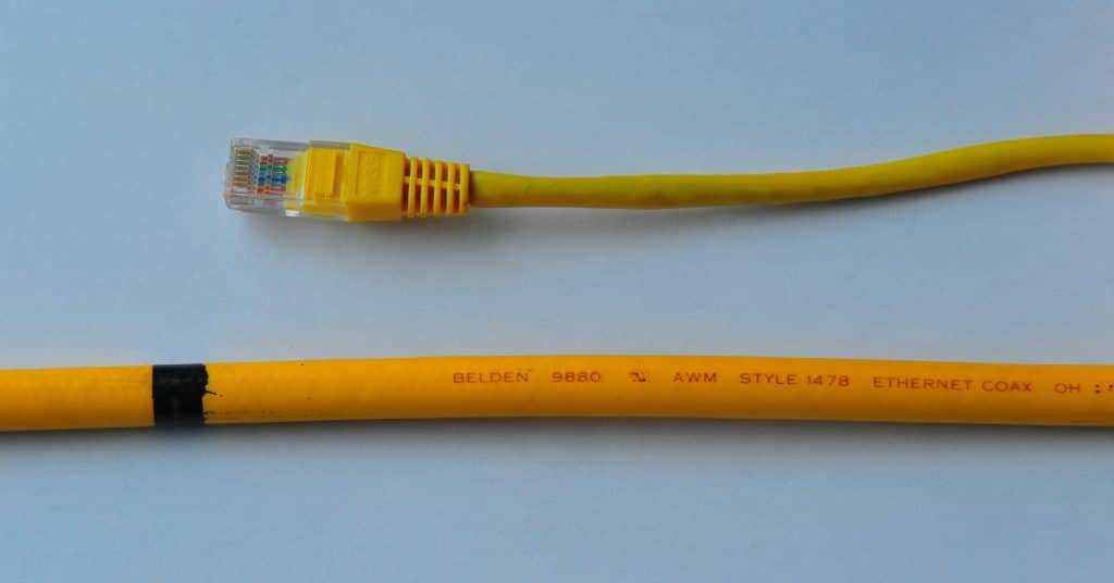 Ethernet je tehnologija komunikacija u mrežama koja je vrlo dobro prihvaćena radi svoje robusnosti, jednostavnosti i brzine. Prve verzije Ethernet tehnologije nisu koristile Ethernet kabel kakav danas poznajemo (a to je UTP – Unshielded Twisted Pair, neoklopljena upletena parica i STP – Shielded Twisted Pair, oklopljena upletena parica, pa čak i optika), već se koristio koaksijalni kabel, kakav se danas koristi za povezivanje antene i radio uređaja. Radi velikog gušenja signala na većim udaljenostima, ograničene brzine prijenosa signala, komunikacije samo u jednom smjeru u jednom trenutku, vrlo brzo je odbačen, te se razvio Ethernet kabel kakvog danas svi poznajemo. (Na slici je prikazan današnji Ethernet kabel [gore] i koakcijalni Ethernet kabel [dolje])