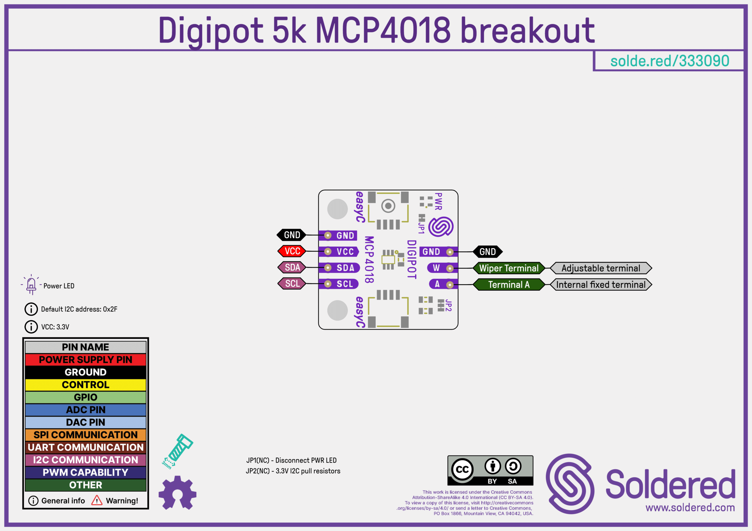 Naš modul baziran je na MCP4018 IC-u koji ima mogućnost ukupno 128 koraka između vrijednosti otpora 0 i 5k. To bi značilo da je u mogućnosti raditi korake otpora od otprilike 39ohm-a. Kontrolira se putem I2C-a što ga čini iznimno jednostavnim za korištenje.