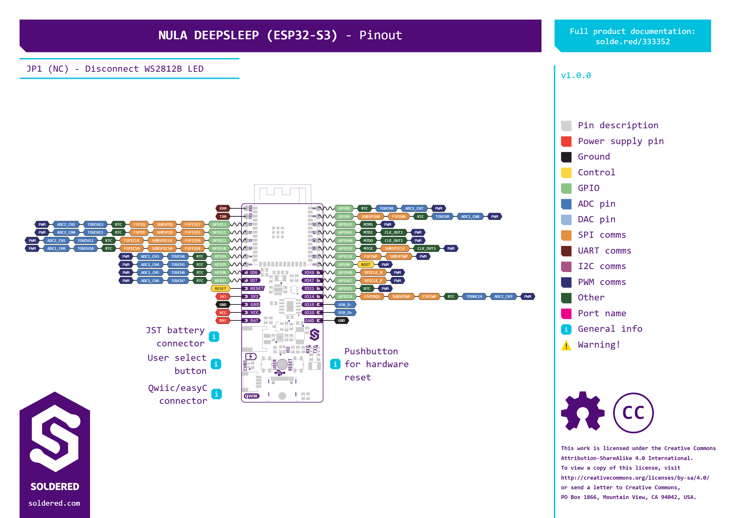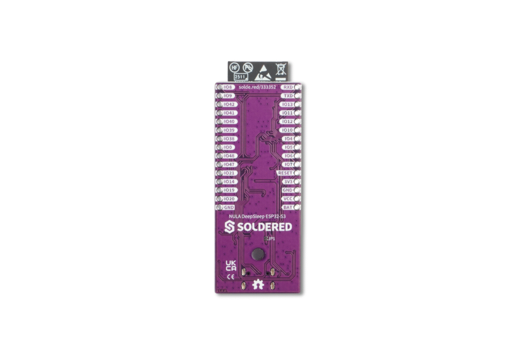 NULA DeepSleep ESP32-S3 je moćna razvojna ploča dizajnirana za IoT projekte s vrlo niskom potrošnjom energije. Temelji se na modulu ESP32-S3-WROOM-1-N8R8, koji kombinira dvojezgreni procesor s 8 MB Flash i 8 MB PSRAM memorije – dovoljno za složene projekte. Glavna prednost ploče je iznimno niska potrošnja u deep sleep načinu rada od samo 7µA, što je čini idealnim izborom za uređaje napajane baterijom, gdje je energetska učinkovitost ključna. Uz integriranu Wi-Fi i Bluetooth LE povezanost, NULA DeepSleep je izvrsna osnova za sve vaše ugrađene projekte. Zahvaljujući širokoj mogućnosti povezivanja, odlično se snalazi i u općim aplikacijama poput upravljanja zaslonima ili bežične komunikacije.