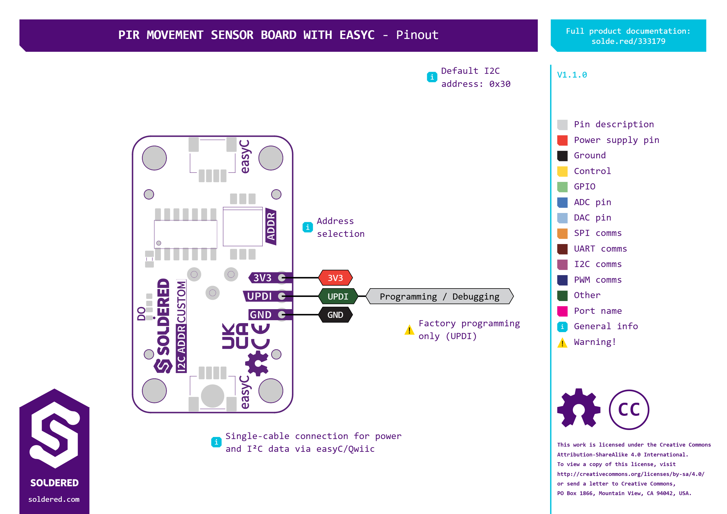 Naša breakout ploča pojednostavljuje korištenje PIR senzora koristeći easyC tehnologiju, čineći je lako povezivom s mikrokontrolerima ili drugim krugovima. Prihvaća ulaz s PIR senzora i prevodi ga u signale koje vaš mikrokontroler može interpretirati. Pored već spomenutnog PIR senzora, na pločici se nalazi i maleni ATTiny404 mikrokontroler, kao i prekidač za izbor I2C adrese. Ova breakout ploča dolazi s 2 easyC konektora za jednostavno priključivanje u easyC sustav. Ukoliko ne želite koristiti easyC, modul je moguće koristiti i preko standardnih headera.