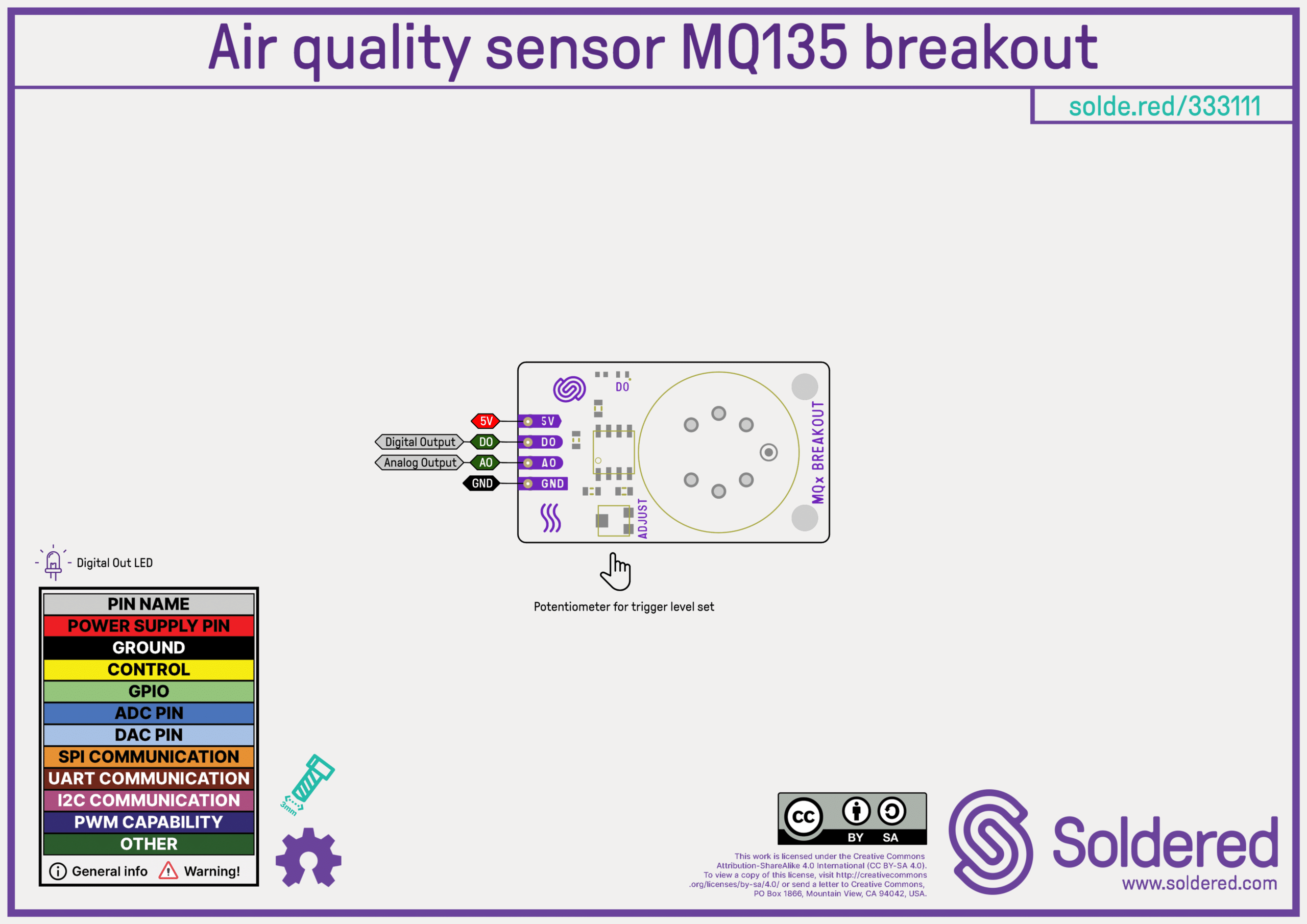 “Ova razvojna pločica nudi digitalni (DO) i analogni (AO) izlaz za maksimalnu fleksibilnost. Digitalni izlaz ima podesivi prag pomoću ugrađenog potenciometra, što omogućuje prilagodbu točke okidanja za alarme i automatizirane reakcije. Analogni izlaz daje proporcionalno naponu (0–5 V) koji odgovara razinama koncentracije plina, što je idealno za bilježenje podataka i aplikacije za praćenje. Radi na 5 V s potrošnjom od 150 mA, uključuje sklop za predgrijavanje radi točnog očitanja te ima montažne rupe za trajnu ugradnju. Kompaktne dimenzije 22×38 mm lako stanu u kućišta, a pritom omogućuju precizno praćenje okoliša.