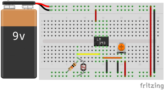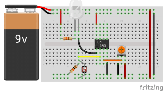 In the end, just note that if you intend to use this circuit with high currents and/or voltages: you should make sure to insert the relay or transistor between the comparator and the light source.