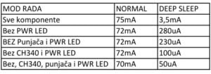 Power consumption in the normal operating mode and DEEP-SLEEP is shown in the following table (5V power supply).