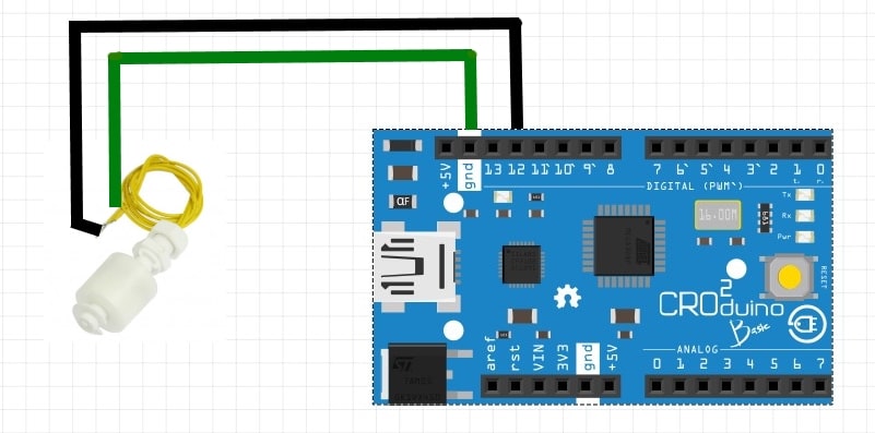 The float sensor is connected via a contractor or relay, but it can also be connected to Dasduino as an input (switch or push button) for the required project. The float sensor has 2 basic work principles: when the water reaches the sensor, i.e. the float sensor is above the water level and the water will activate the sensor as the level increases, and when the float sensor is underwater, i.e. when the sensor reads the water level drop below some predefined levels.