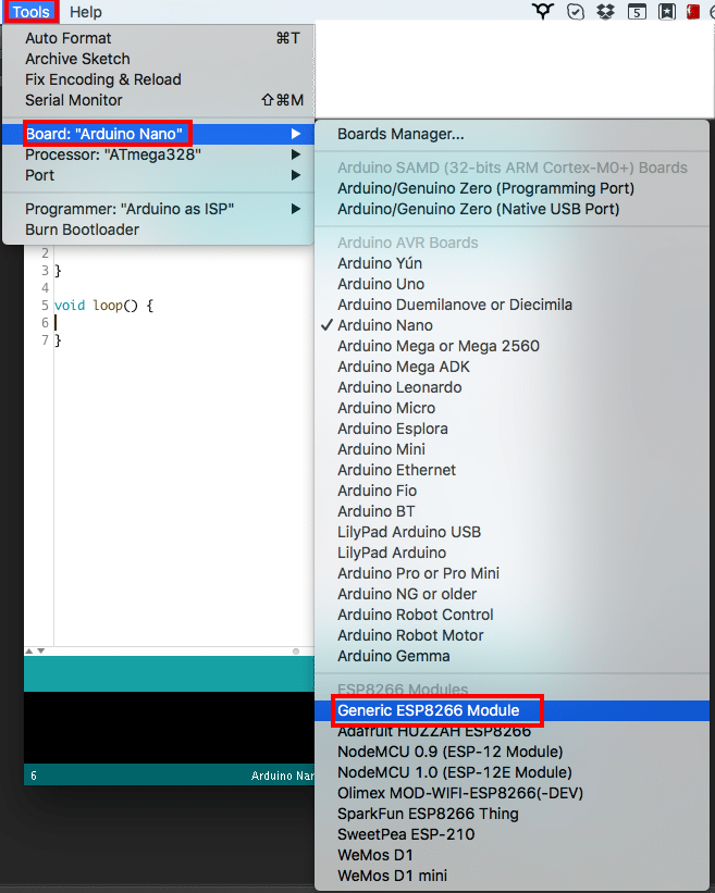 STEP 5: This process will take some time, but after it’s done, feel free to close Boards manager. Now under Tools->Board, you’ll be able to see some new options. Choose Generic ESP8266 Module.