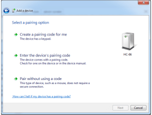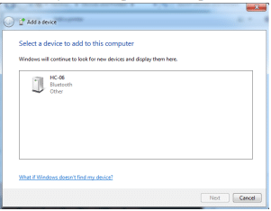 This will open a dialogue for adding a new BT device. Now we wait for it to find the device, signify HC-06 and click on Next.