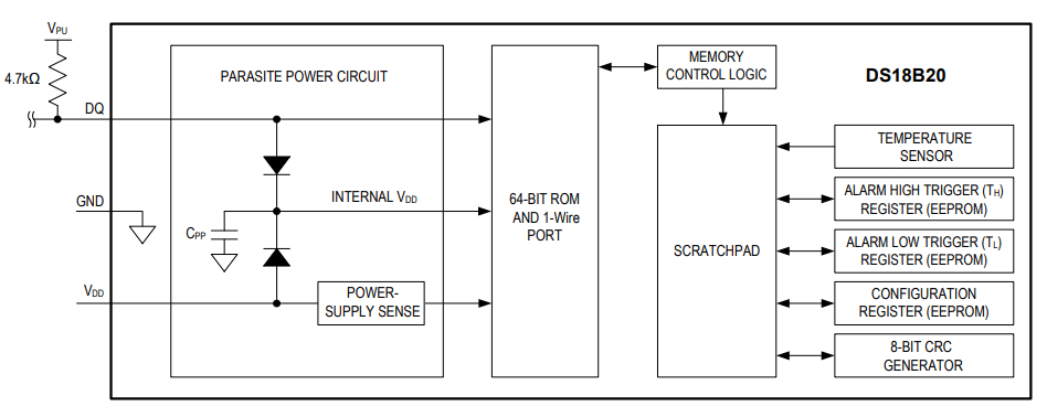 The device may have a special external power supply or it can be supplied via parasitic power using data line, about which you can find more in a separate tutorial.