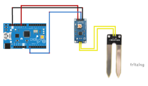There is a built-in comparator on the module, which provides HIGH / LOW (0V or 5V) values on the “DO” pin, depending on the threshold that is set by rotating the potentiometer on the module, and on the “AO” pin, it provides values between 0V and 5V which can be read as values between 0 and 1023 by the Dasduino using its ADC converter, depending on the humidity of the soil.