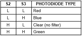 S2, S3 – pins for RGB filters selection (red, blue, green, without)