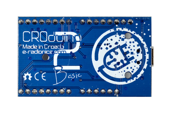 We are especially pleased that we managed to turn the back side of the board from unused space into a recognizeable design. Our logo is on the right side of the board, left is the label of the board, our website, and also we must not forget the label : “Made in Croatia” since we continue our tradition with domestic production of Croduino boards in our workshop.