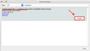 After that, type “croduino” in the search section. The “Croduino Basic2 PB” package appears by e-radionica.com. Select and install it.