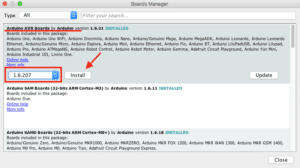 Install Arduino AVR Boards by Arduino, version 1.6.207. It may take up to several minutes.