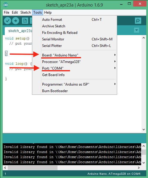 You just need to set up Arduino IDE. Two settings are important: board and serial port. Both menus are located under Tools.