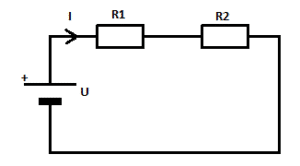 Where U1 and U2 stand for voltage drops on the R1 or R2 resistor. The sum of voltages U1 and U2 is equal to the supply voltage U: U = U1 + U2.