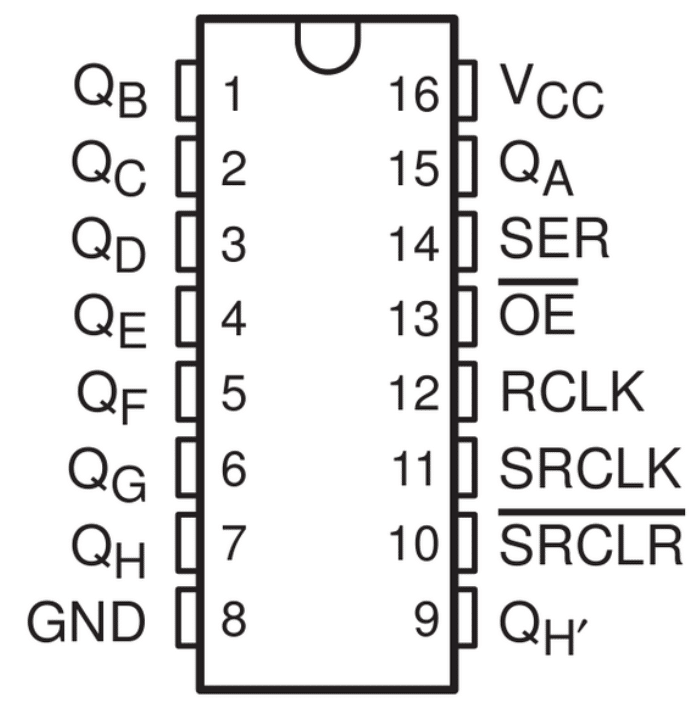 Qa to Qh – outputs of the shift register (8 in total)