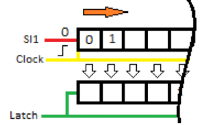 As we have already said, in order to successfully manage the register, we need three pins: Data Input (SI), Clock and Latch.