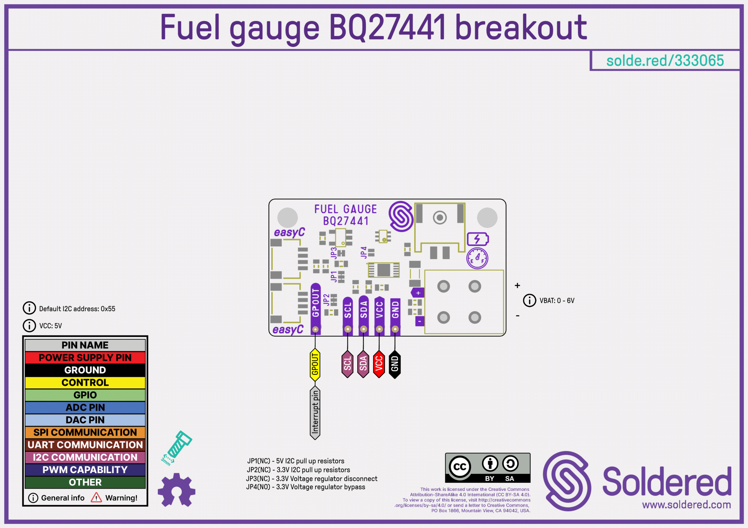 Fuel gauge is a special type of accessory for lithium batteries that very precisely measures the state of the battery. This includes current voltage [mV], state of charge [%] and probably most interestingly: remaining capacity in the battery [mAh]. It is used with 1S batteries, and provides all this information via the I2C interface.