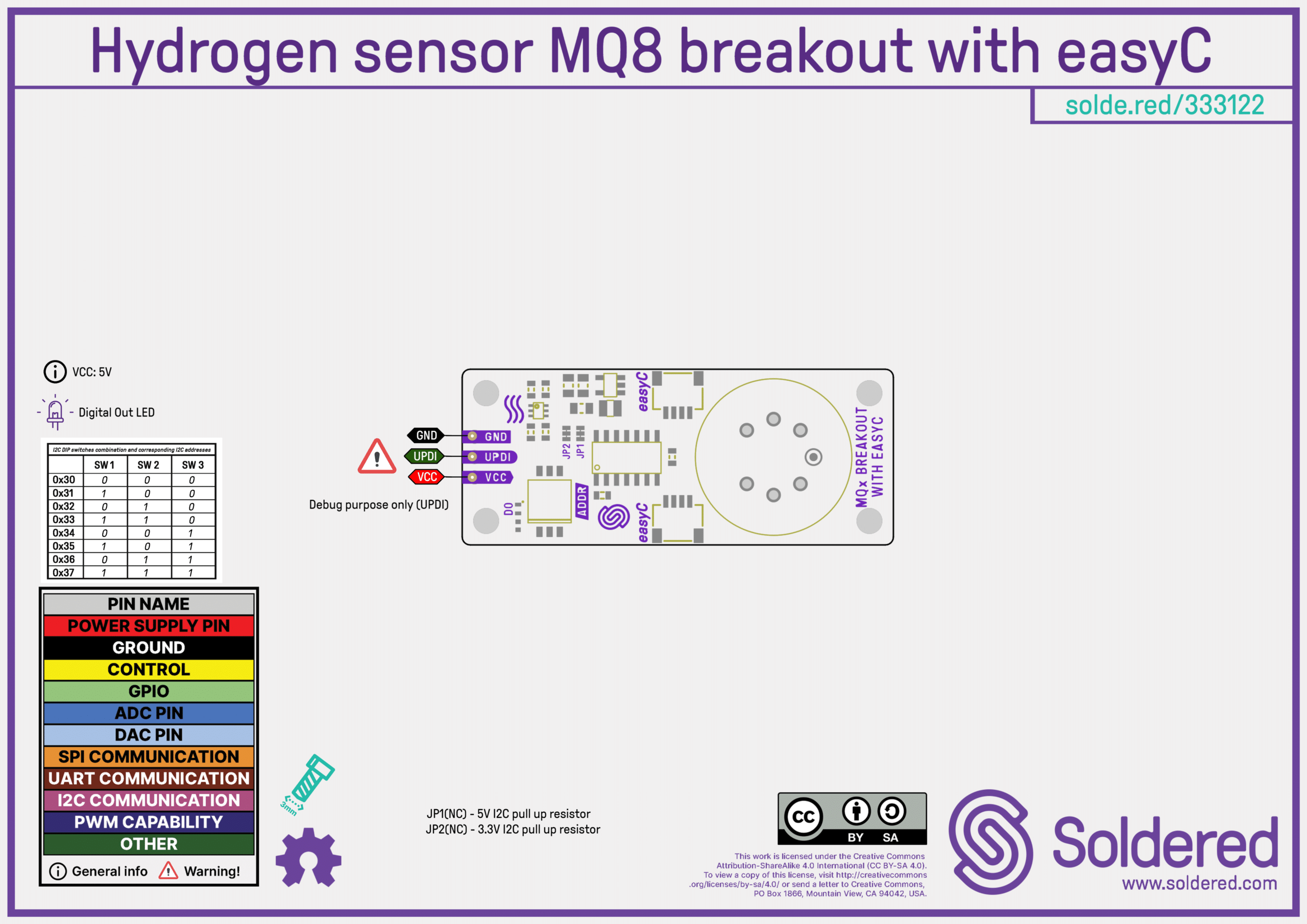Hydrogen is all around us, and it is dangerous because it is highly flammable. Its leakage can be very dangerous for both life and property. That is why it is important to detect any leakage to prevent such losses in the industry. To do this, hydrogen sensors such as the MQ8 breakout board are used. The sensor detects hydrogen in the range of 100-1000 ppm.