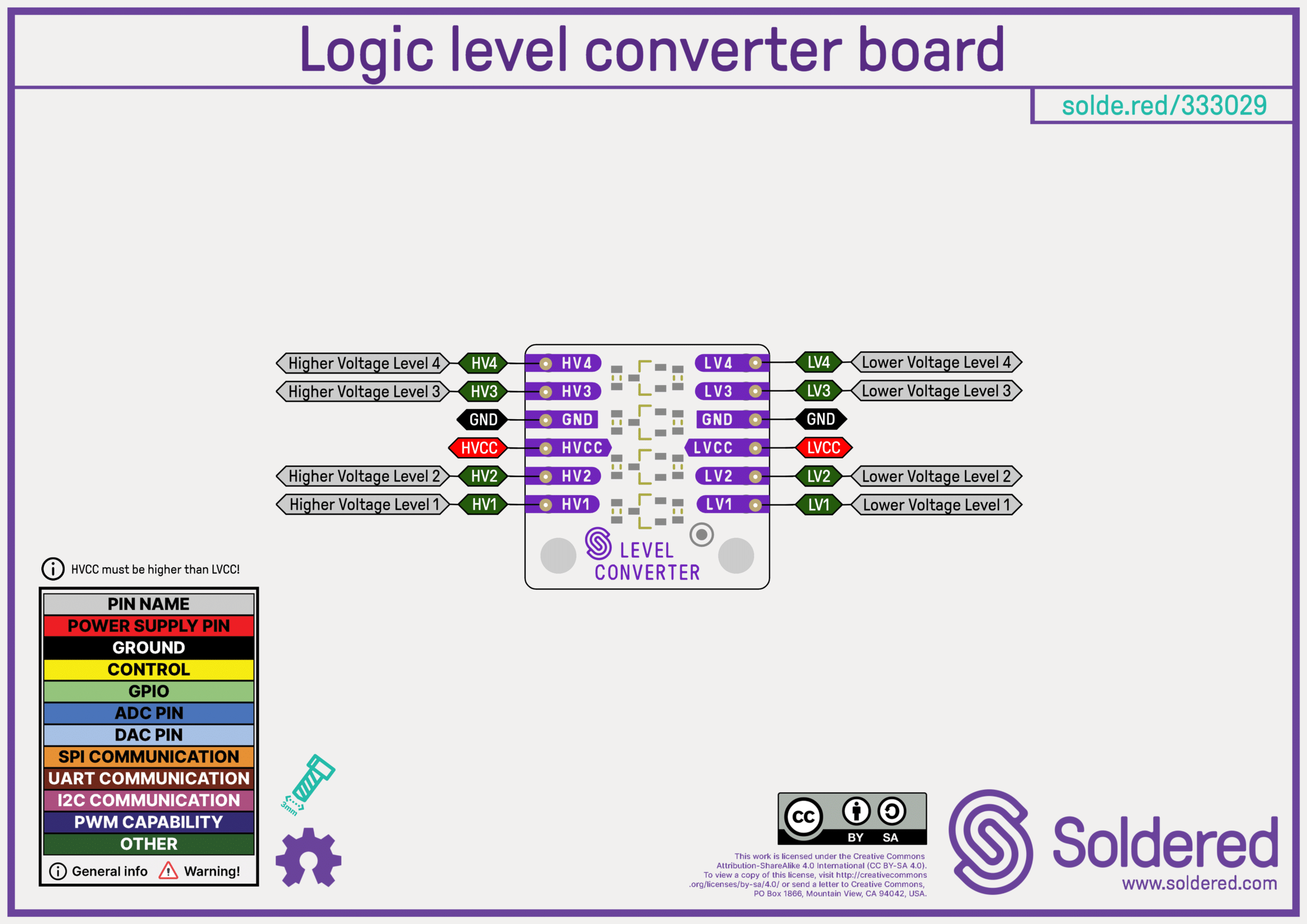 This logic level converter board module gives us a translation of logic level between two signals. In layman’s terms, if we take a signal with logical “unit” on 5V convert into a signal which logical “unit” has on 3.3V this module will help us. Something like this is useful in this case if we want to achieve communication between two devices from whom one works on 5V and the other on 3.3V, or any other combination of voltages. Directly connecting we would “burn” a device that works on 3.3V and a module gives us to avoid that.