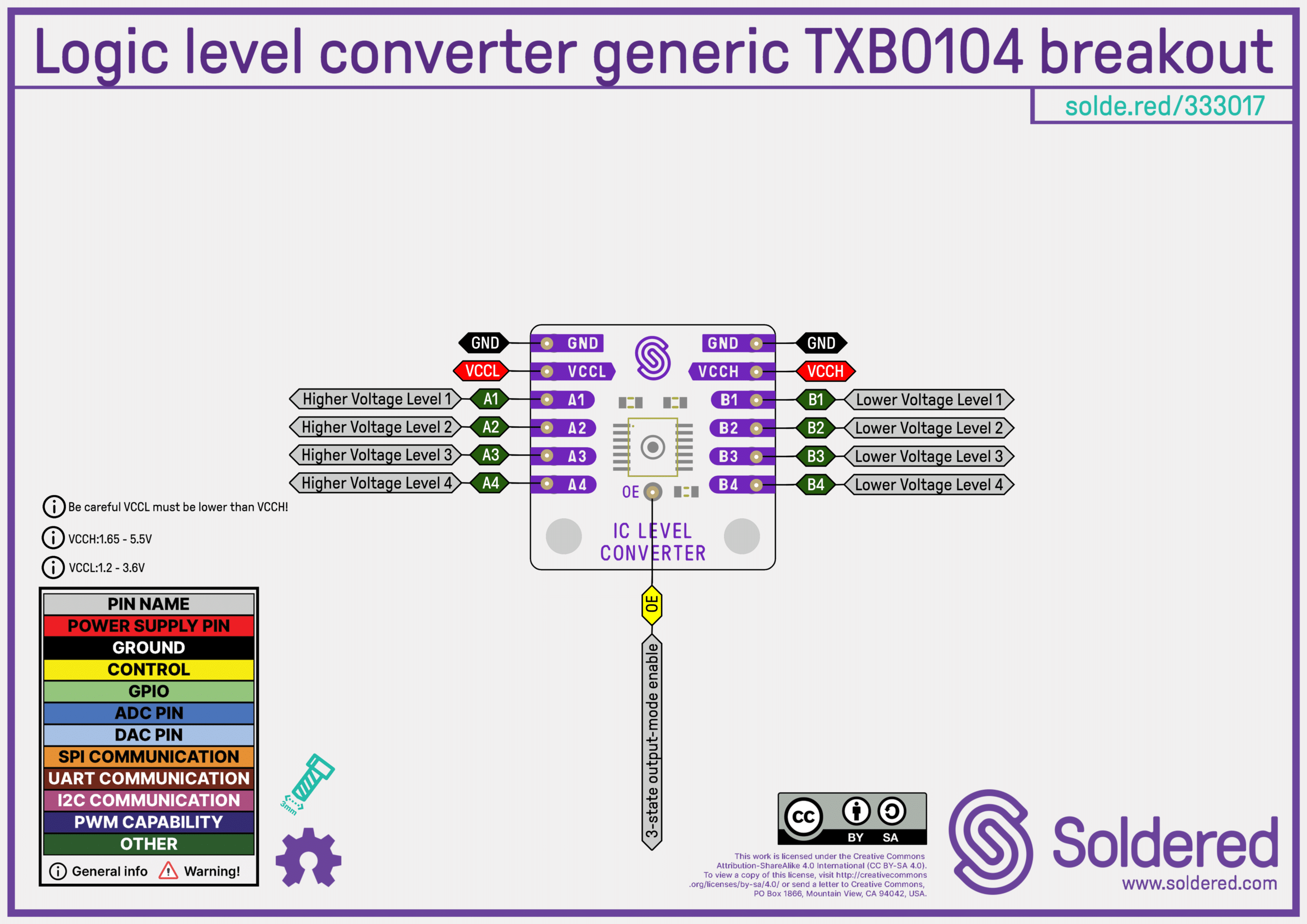 The TXB0104 handles push-pull and open-drain signals, supporting SPI, I2C, UART, and other digital interfaces. All channels are fully bidirectional, allowing simultaneous two-way communication. The compact breakout format makes it easy to integrate into breadboards or custom PCBs.