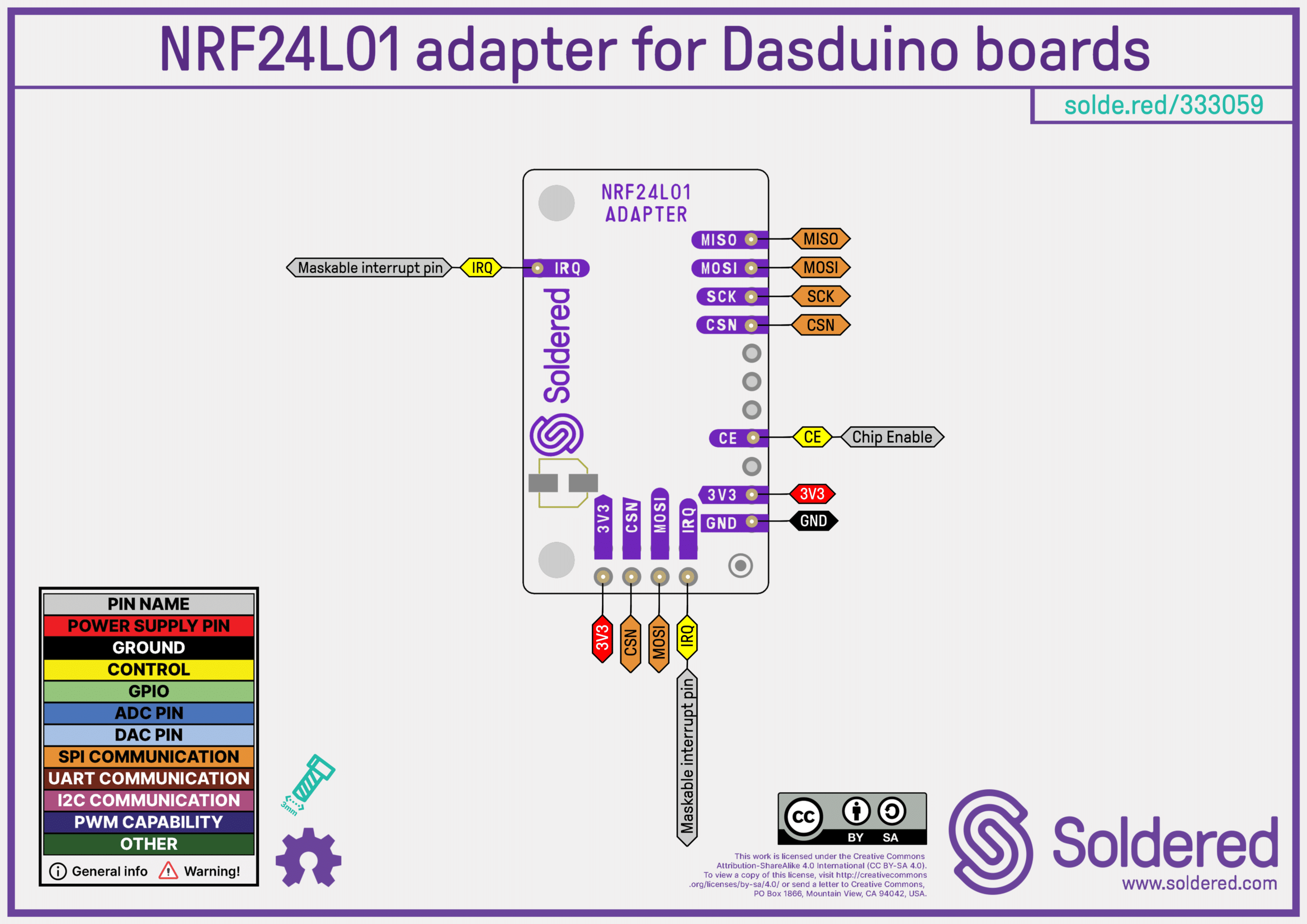 Connecting the NRF24L01 can be tricky – you have to pay attention to the layout of the pins, adjust them to match those from the library and add a capacitor. This board solves all that, and it already comes with soldered headers, so just plug this board into your Dasduino and that’s it!